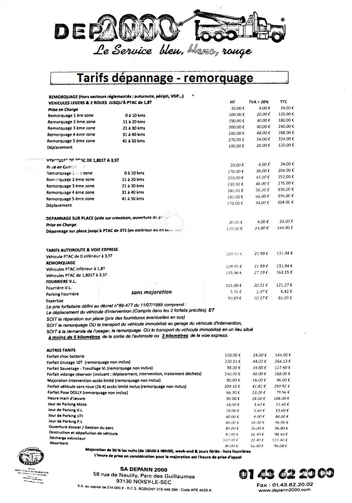 Les tarifs dépannages remorquages de nuit sont doublés.