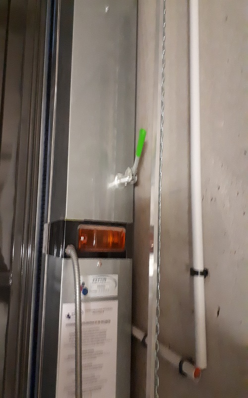 Manipulation pour fermer la porte extérieure du parking quand elle est bloquée: "remonter la manivelle verte vers le haut et réappuyer sur le bip pour la réenclencher"